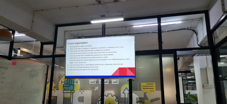 Both the workshops were conducted for two hours, with a 30-minute break. Overall, the workshop covered the theme of gender and provided a holistic understanding of the same. Biological sex vs Gender, Genderbread person, Charmed circle, Intersectionality, Equity vs. equality, Workplace biases and prejudices, and Gender Affirmative workplace practices were the sub-themes covered.